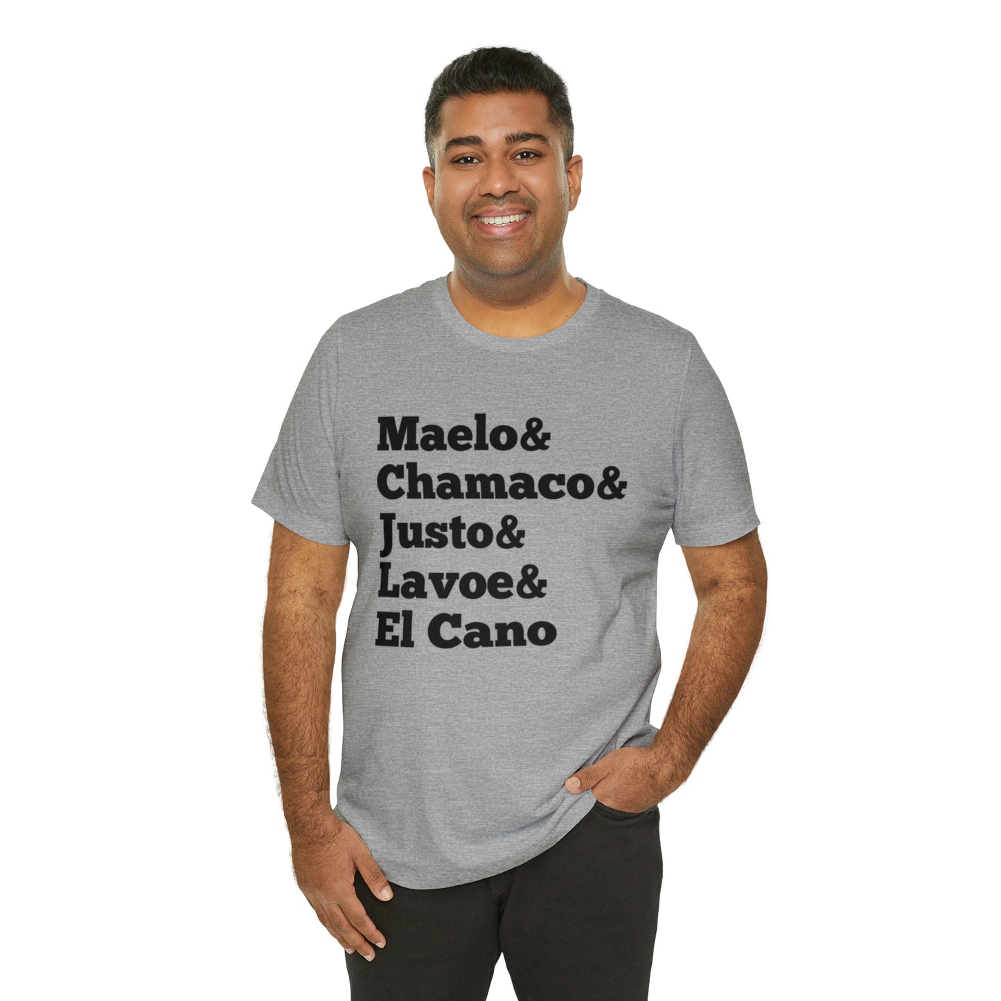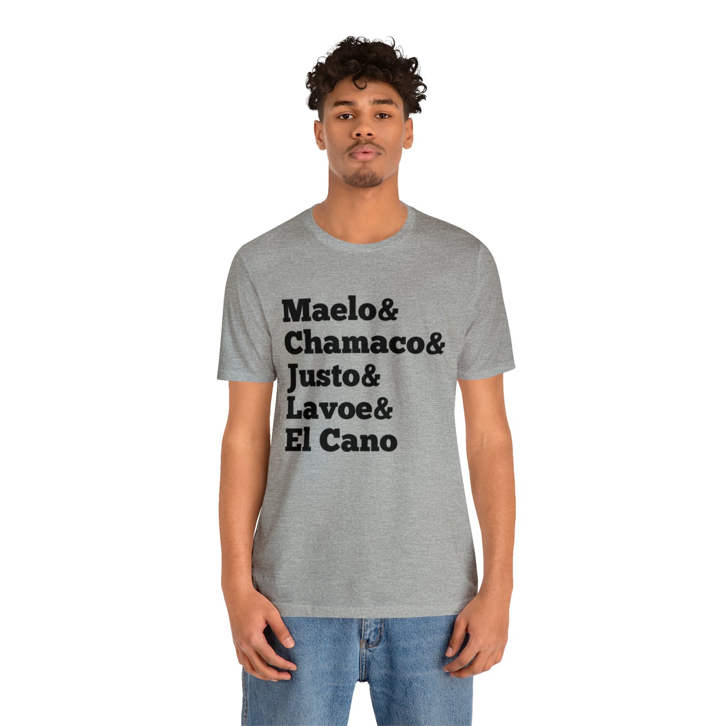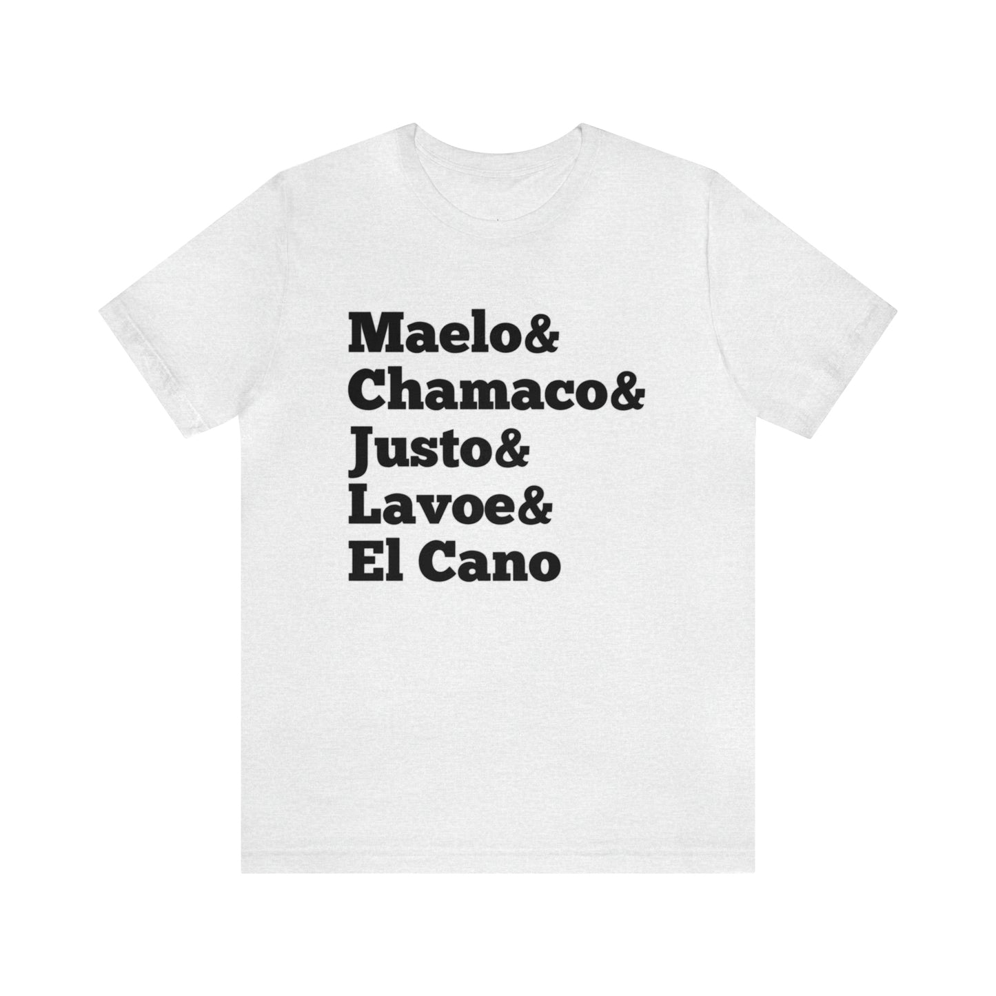 Esta clásica camiseta de manga corta de punto unisex se adapta como un favorito muy querido. El algodón suave y el estampado de calidad hacen que los usuarios se enamoren de él una y otra vez. Estas camisetas tienen cuellos de punto acanalado para reforzar la forma. Los hombros tienen cinta para un mejor ajuste con el tiempo. Las costuras laterales dobles mantienen la forma de la prenda por más tiempo.