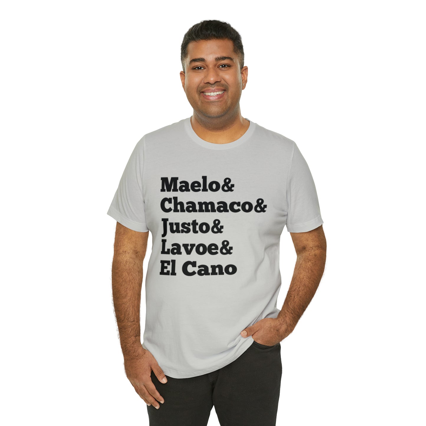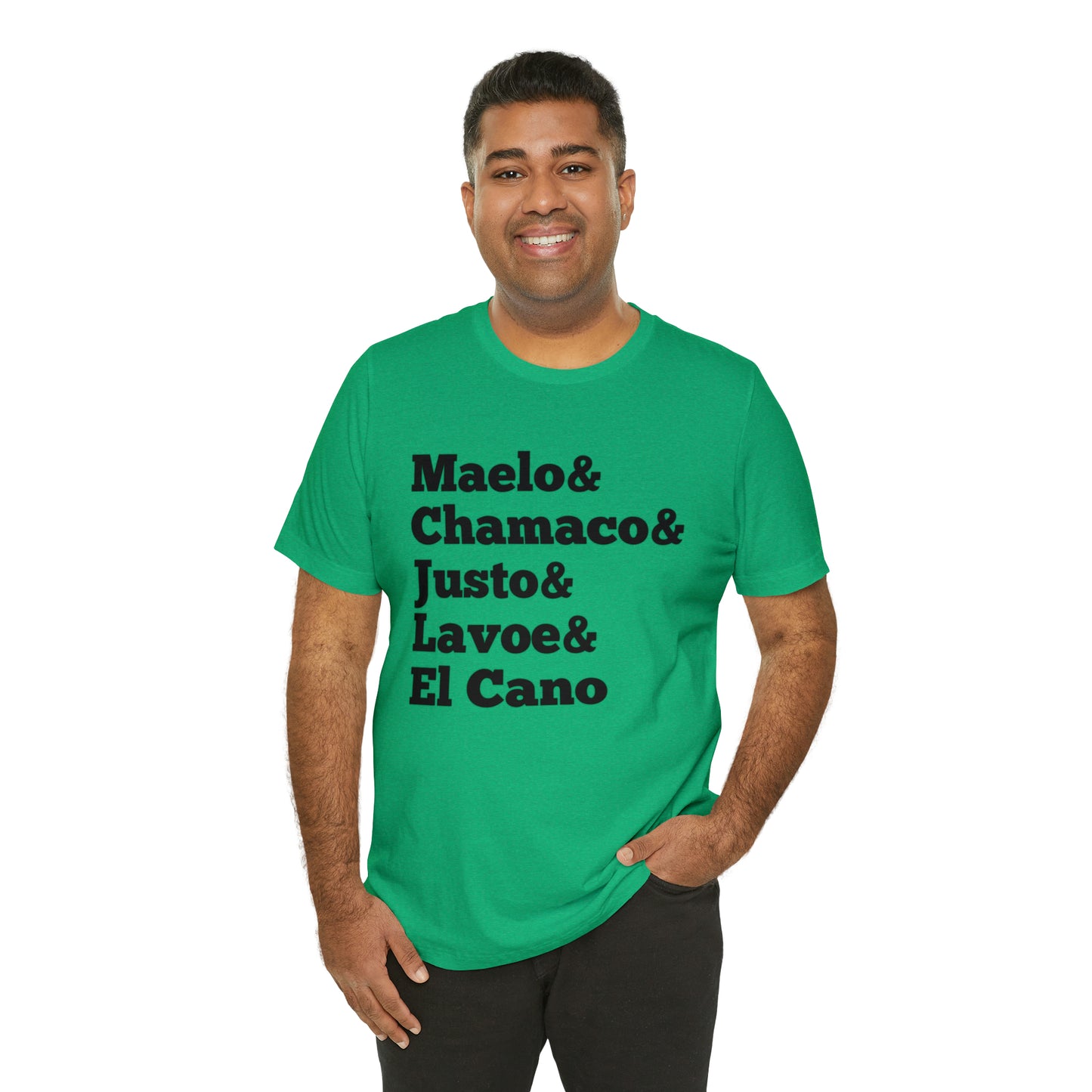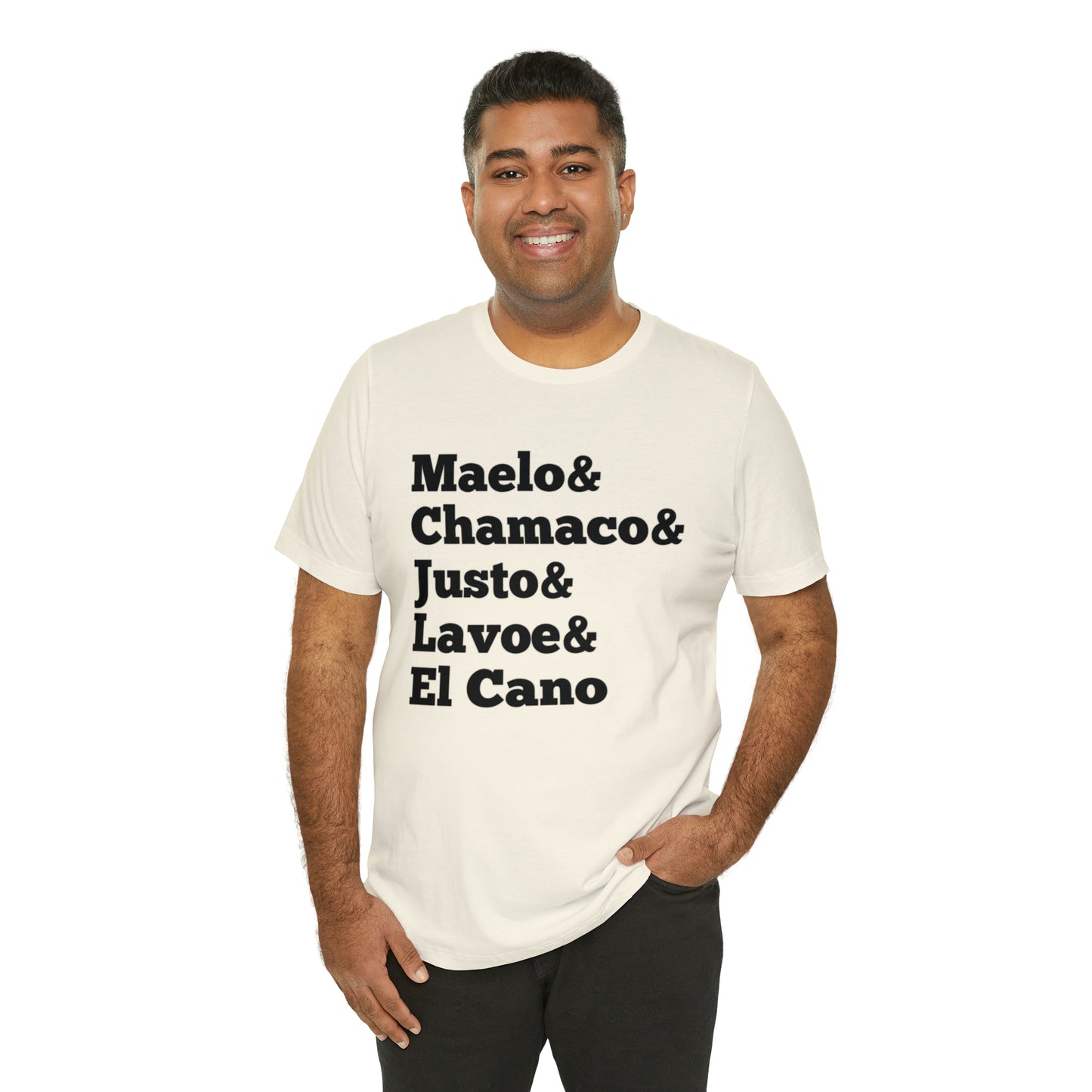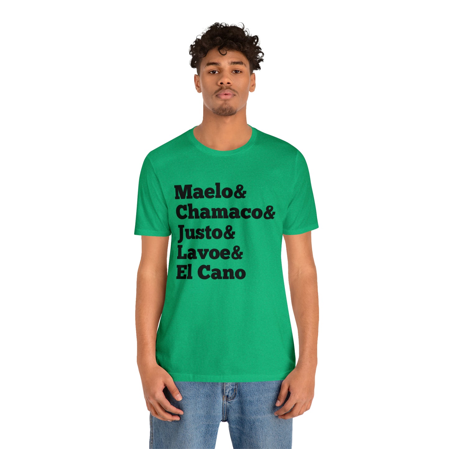 Esta clásica camiseta de manga corta de punto unisex se adapta como un favorito muy querido. El algodón suave y el estampado de calidad hacen que los usuarios se enamoren de él una y otra vez. Estas camisetas tienen cuellos de punto acanalado para reforzar la forma. Los hombros tienen cinta para un mejor ajuste con el tiempo. Las costuras laterales dobles mantienen la forma de la prenda por más tiempo.