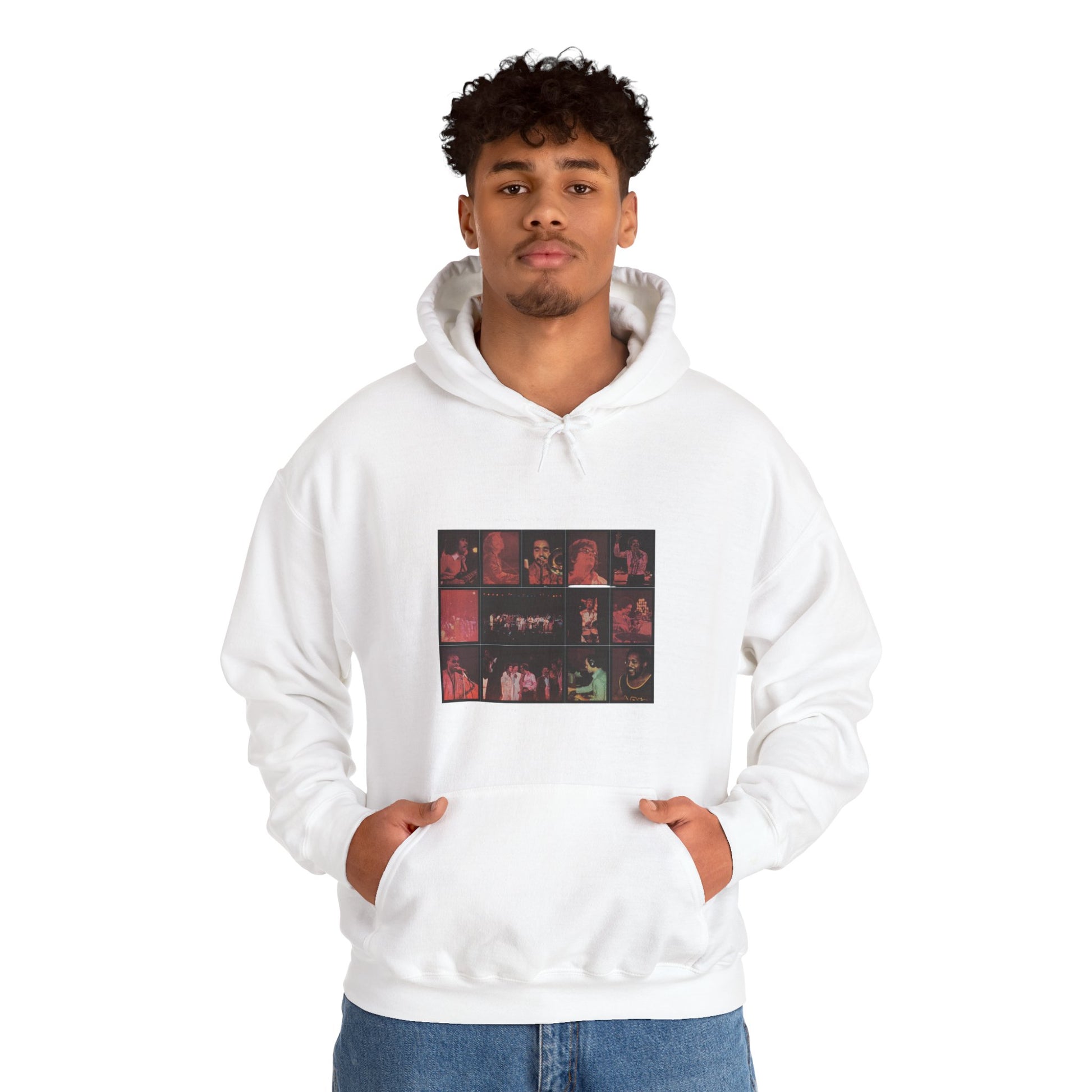 This cozy hoodie carries a quiet, cinematic energy — a grid of moody, film-like stills printed across the chest that feel like late-night stories frozen in time. The medium-heavy 50/50 fabric drapes warmly without weighing you down, and the double-lined hood plus color-matched drawcord add a thoughtful, wearable finish. Slip it on for chilly evenings at a backyard bonfire, wandering city streets after dusk, or low-key house shows where the soundtrack matters more than the lights. The pouch pocket keeps your hands warm and your essentials close, while the removable neck label keeps the inside scratch-free. It’s built for people who travel between scenes — collectors of small moments, soundtrack lovers, and anyone who likes their layers a little mysterious and a little lived-in.
