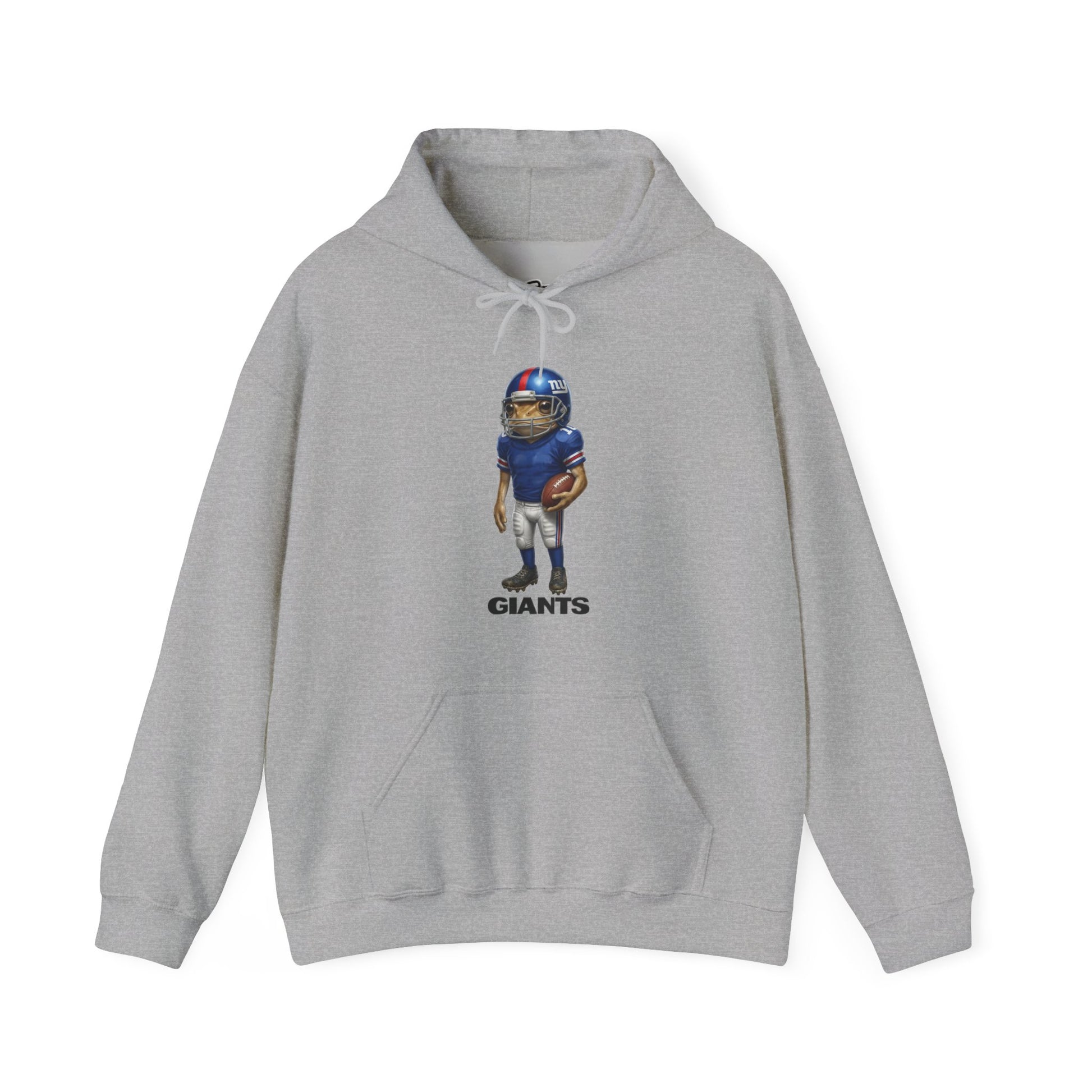 Slip into a soft, warm hoodie that feels like the sideline chill has been woven into the fabric. This mid-weight sweatshirt brings a playful, hand-painted football character front-and-center — a small, bold mascot that reads “GIANTS” beneath it. The roomy kangaroo pocket and double-lined hood lend practical comfort for game days, late-night walks, or lounging at home. The smooth cotton-poly blend holds prints well and keeps its shape through wear, while clean details like a tear-away label and color-matched drawcord make it feel intentional and lived-in. Wear it to rally with fellow fans, to cozy up during chilly practices, or just when you want a quiet, sporty vibe in your everyday rotation.