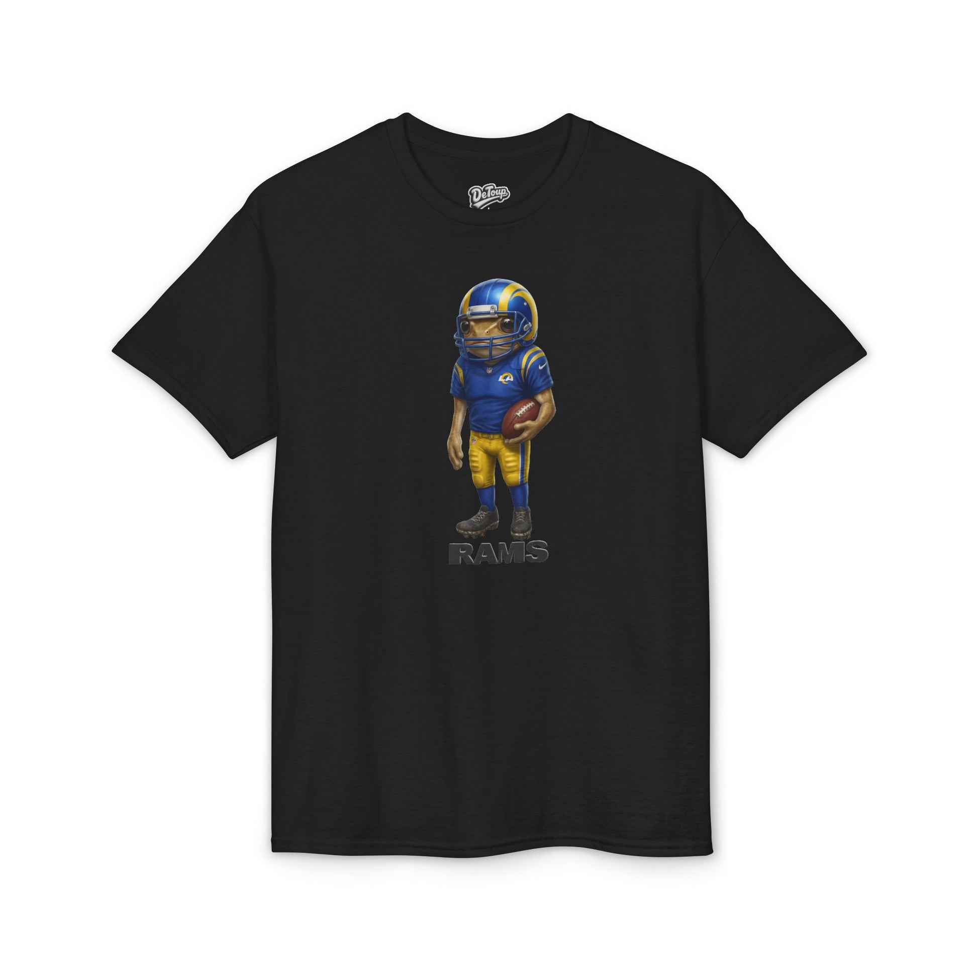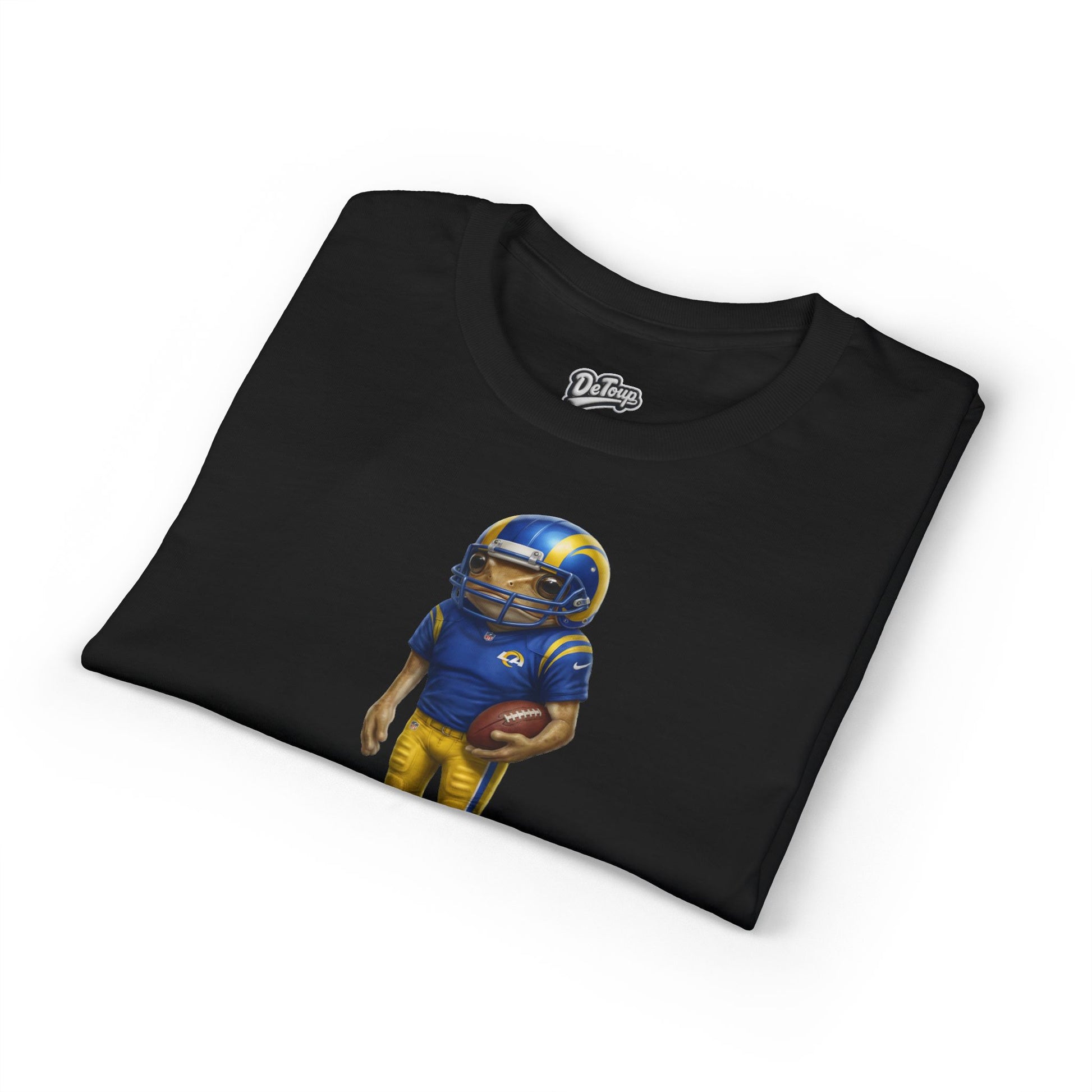 A soft, breathable tee that carries game-day energy in a laid-back, wearable way. The shirt features a small, hand-painted-style football player graphic in team blue and gold centered on the chest with a subtle distressed wordmark beneath. Lightweight and moisture-wicking, it moves with you during tailgates, weekend practices, or casual city strolls. The fit sits comfortably at the shoulders with a ribbed collar that bounces back after wear and a smooth, tag-free neckline so nothing distracts from the moment. Wear it to root for your team, coach the kids from the sideline, or layer under a jacket for chilly evening games — it feels familiar from the first wear and keeps looking sharp through repeats and wash cycles.
